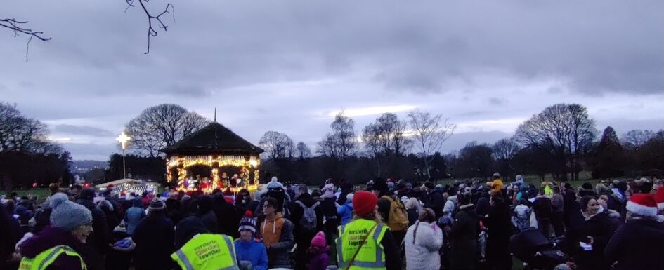 Thankful for the better weather this year, the team swung into action and there was a wonderful atmosphere as an estimated more than 800 people gathered to enjoy singing well-known carols and listen to a short service of blessing, ably accompanied by ‘The Stroke of Genius Big Band’, as well as being served a warm drink and a mince pie!
